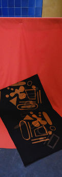 De zeefdrukken bestaan uit verschillende stoffen en ik heb enkel gedrukt met restverf.